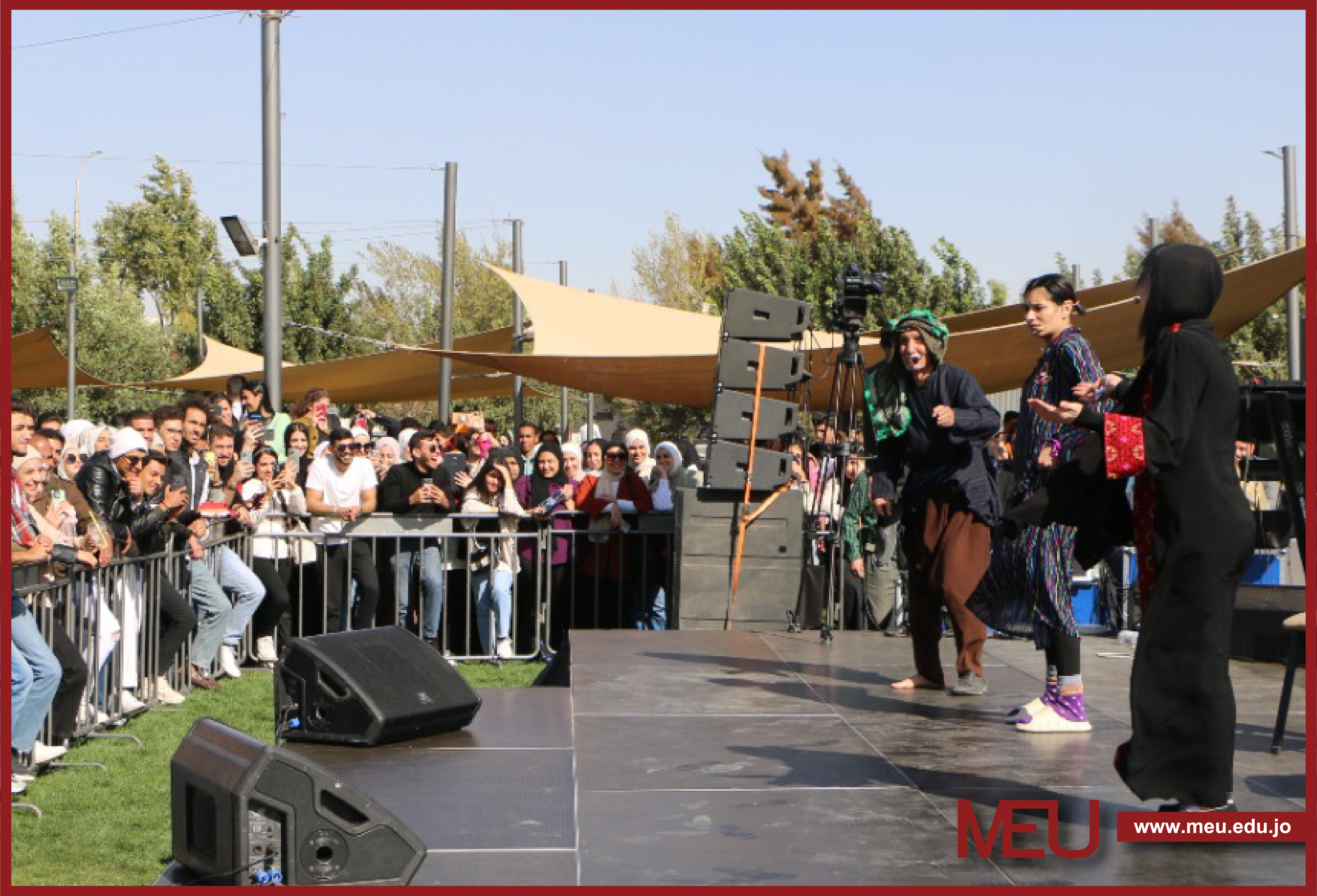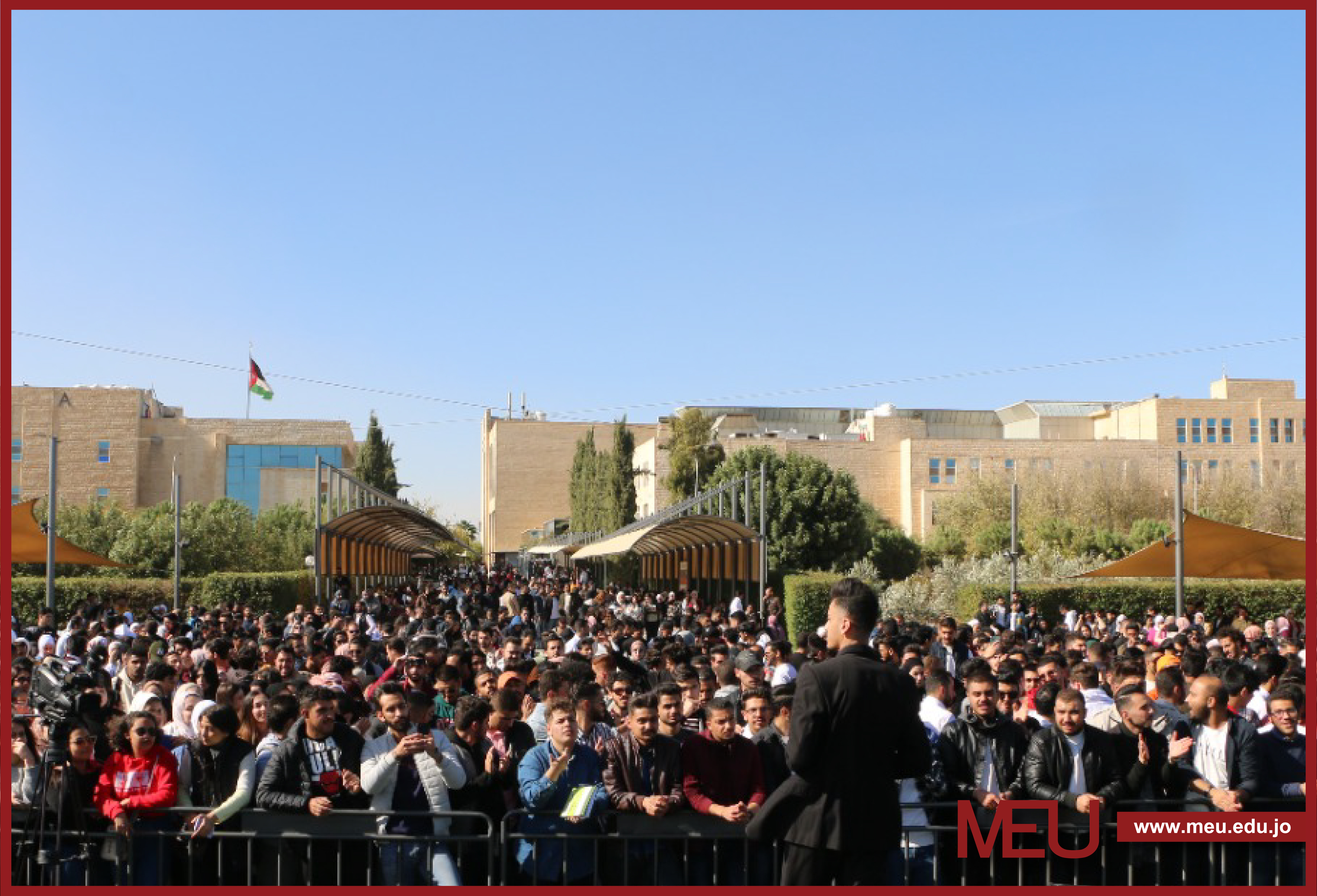 سرايا - احتفلت جامعة الشرق الأوسط بالطلبة، الجدد منهم والقدامى، حيث امتلئ المُسطّح الأخضر داخل رحاب الجامعة بأعداد كبيرة من الطلبة الذين بدأوا يرددون وراء الأغاني الوطنية والتراثية، ليتم بعد ذلك تقديم الفنّان الأردني المبدع حسين طبيشات لمسرحيته التي تحكي قضايا الواقع: "سجّل أنا عربي".