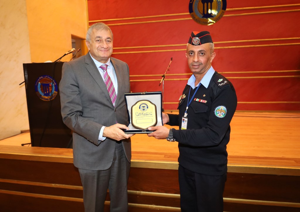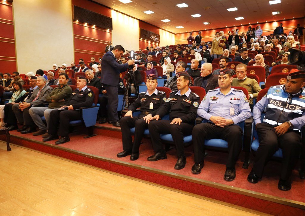 حضر من جانب مديرية الأمن العام الرائد يزن النجداوي مندوباً عن مدير مديرية الإعلام والشرطة المجتمعية والنقيب نور الدين العثمان مندوباً عن رئيس مركز أمن عين الباشا والنقيب معتز المجالي مندوب المعهد المروري والنقيب ثامر عناب رئيس فريق المسرح الشرطي .وفي نهاية الحفل قدمت الجامعة الدروع التذكارية الى مديريات الأمن العام المشاركة.