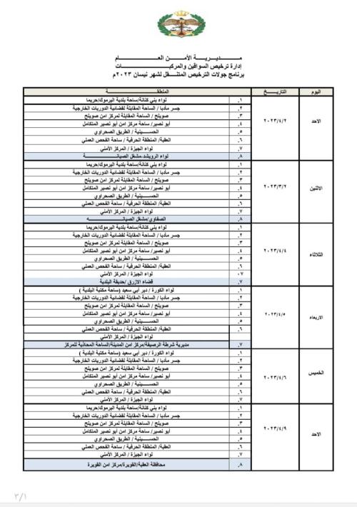 سرايا - أعلنت إدارة ترخيص السواقين والمركبات عن مواعيد العمل بجولات الترخيص المتنقل ضمن المبادرة الابتكارية ( بنوصلك ) خلال شهر نيسان لعام 2023م في عدد من مناطق المملكة.
