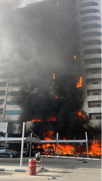 سرايا - تمكنت شرطة عجمان وفرق الدفاع المدني من السيطرة على حريق شب بواجهة بناية سكنية من 15 طابقاً في منطقة النعيمية (3) على شارع الشيخ خليفة بن زايد عصر اليوم، مع التمكن من إخلاء وإنقاذ سكان المبنى دون وقوع إصابات حتى الآن.