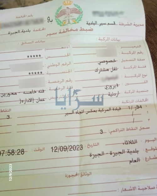 سرايا - وثق مواطن في منطقة الجيزة، أول مخالفة يتلقاها، مع بدء تطبيق قانون السير الجديد، صباح اليوم الثلاثاء.