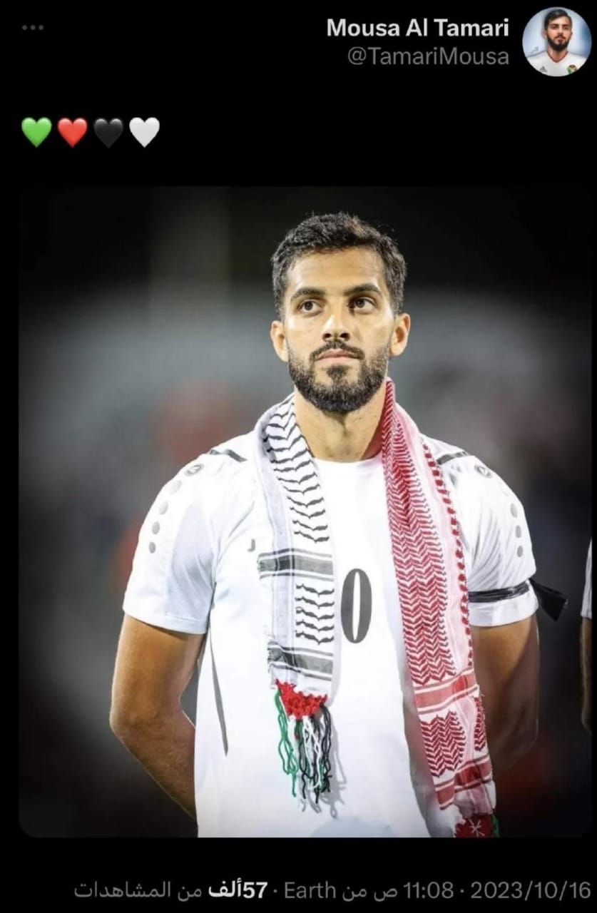 وذكرت تقارير صحيفة فرنسية، بأن اللاعب الأردني موسى التعمري، يخاطر بمستقبله ومسيرته الكروية مع نادي مونبلييه الفرنسي، يعرضه دعمه المتواصل لفلسطين وغزة، للسجن لمدة لا تقل عن 5 سنوات ، وفقا للقانون الفرنسي.