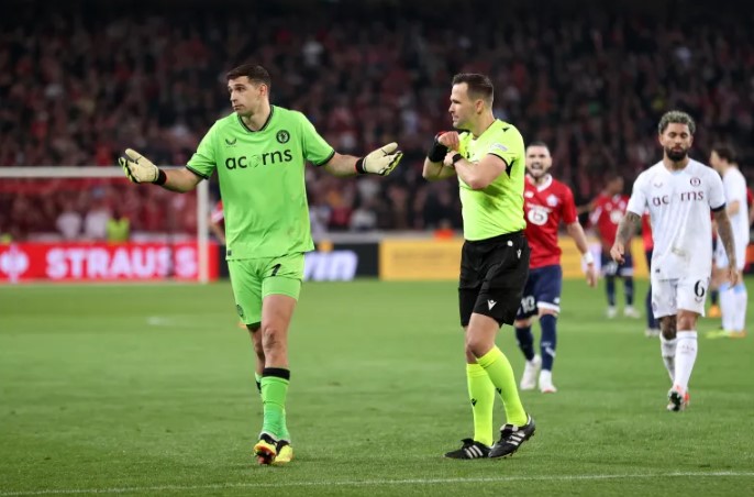سرايا - في حدث نادر من نوعه، حصل الأرجنتيني إيميليانو مارتينيز حارس مرمى أستون فيلا الإنجليزي على بطاقتين صفراوين، في مواجهة فريقه أمام ليل الفرنسي في إياب ربع نهائي دوري المؤتمر الأوروبي لكرة القدم، لكنه رغم ذلك لم يُطرد بعد البطاقة الثانية، فكيف حدث ذلك؟.