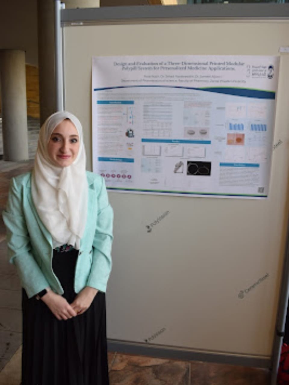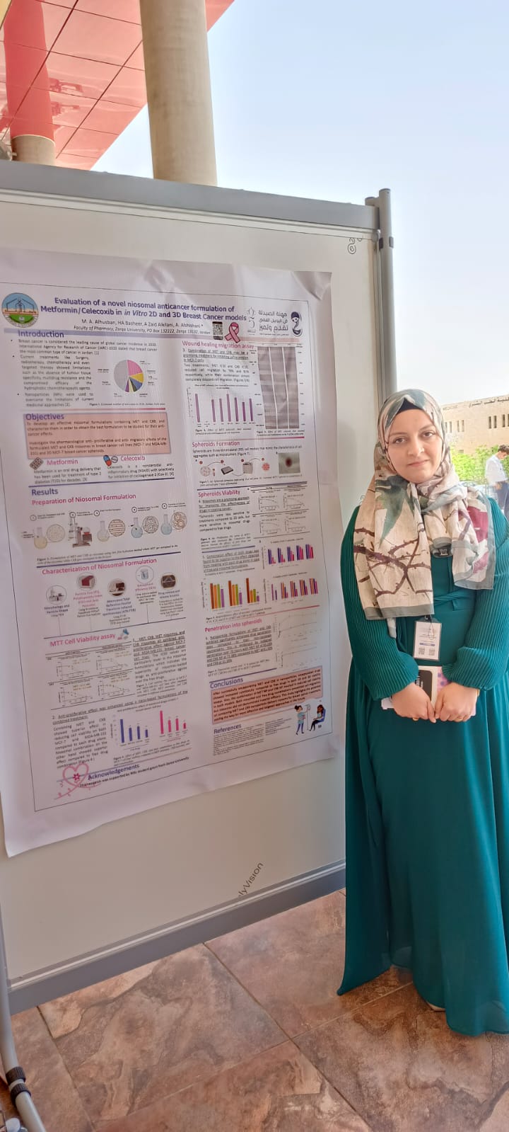 وحصل على المركز الأول كل من الطالب هشام عصام عن بحثه المتعلق بتطبيقات الذكاء الاصطناعي في الممارسة الصيدلانية والتعليم الصيدلاني، والطالبة مرام الحسبان عن بحثها المتعلق بدراسة تصنيع وفحص فعالية علاج مزدوج من المتفورمين والسيليكوكسيب يستهدف خلايا سرطان الثدي.