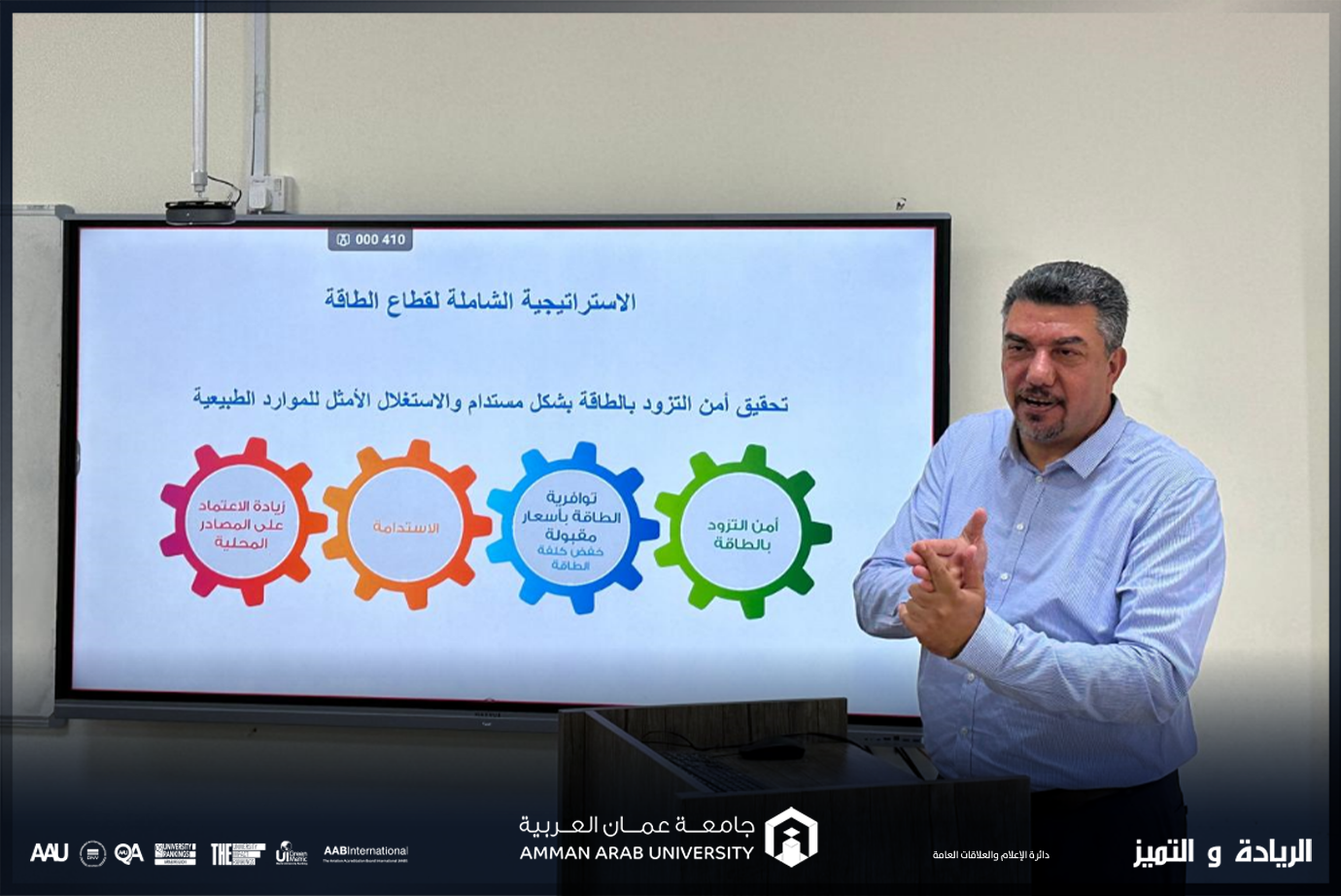 سرايا - ضمن رؤية جامعة عمان العربية بضرورة الاستفادة من الخبراء في كافة المجالات العلمية بتقديم محاضرات تطبيقية موجهة لطلبة الجامعة من كافة التخصصات، قام قسم هندسة الطاقة المتجددة في جامعة عمان العربية باستضافة مستشار الطاقة الدكتور إياد السرطاوي للحديث عن قانون الطاقة المتجددة وترشيد الطاقة الاردني.