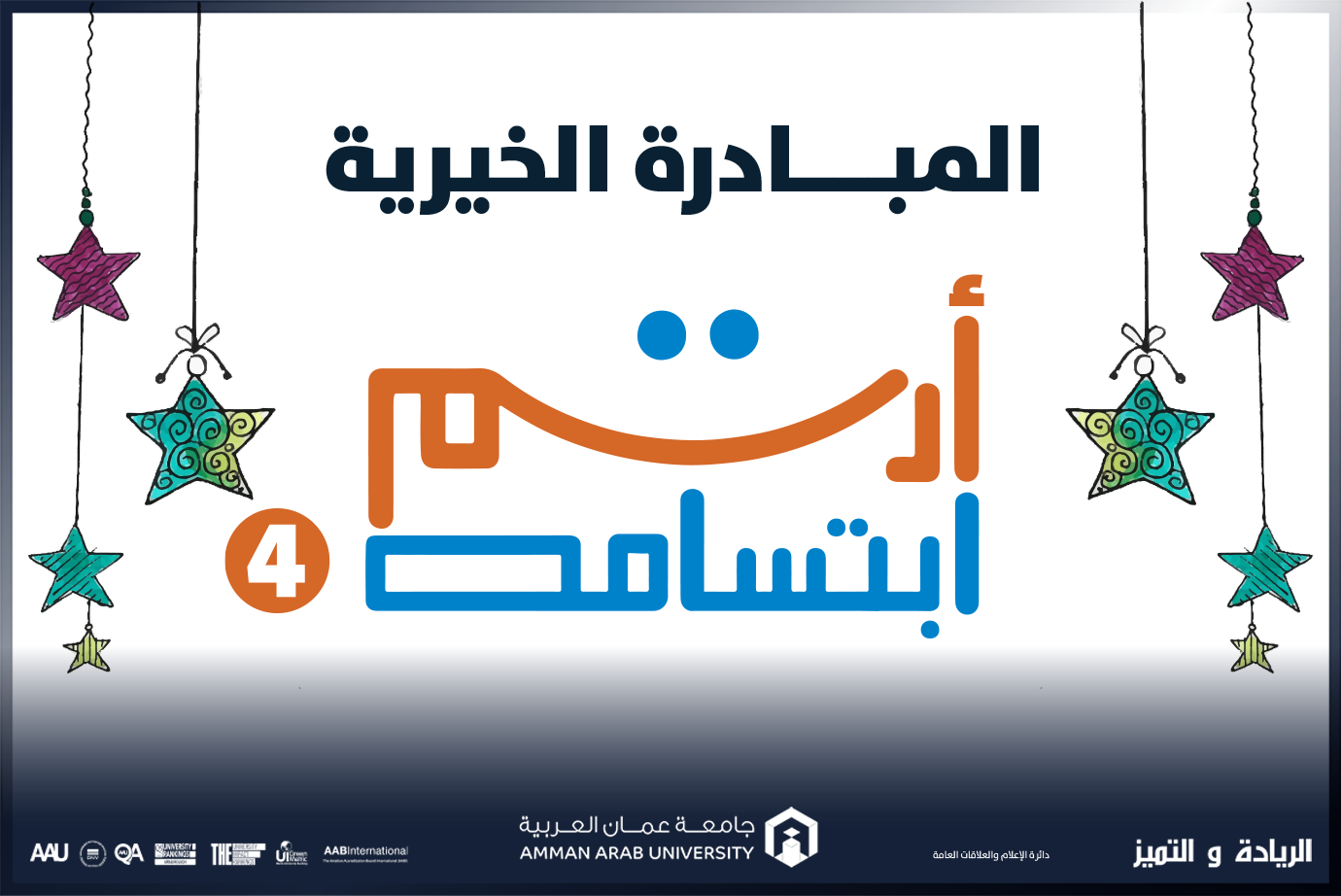 سرايا - ضمن سلسلة المبادرات الخيرية التي انتهجتها كلية الأعمال في جامعة عمان العربية في السنوات الماضية، وتفعيلاً لدور الجامعة في الشراكة المجتمعية الهادفة، أطلقت كلية الأعمال في جامعة عمان العربية المبادرة الخيرية "أرسم ابتسامة 4" بمساهمة طلبة وأعضاء الهيئتين التدريسية والإدارية في الجامعة وذلك من خلال التبرع بمستلزمات العيد تضمنت (الملابس، الاحذية، العاب للأطفال، حلويات للعيد ، مواد غذائية متنوعه)، والتي تم توزيعها على (130) أسرة في عدة مناطق هي: لواء عين الباشا، ومخيم البقعة، وقرية أبو حامد، ولواء المزار الشمالي بالتعاون مع مركز لواء المزار الشمالي للخدمات المجتمعية، ، حيث كان لهذه المبادرة دوراً هاماً في تعزيز التكافل الإنساني ورسم الابتسامة على وجوه المستفيدين، وثمّن القائمون في مختلف المناطق على الدور الإنساني لجامعة عمان العربية من خلال غرس قيم التكافل التي تؤمن بها الجامعة، والتي تسعى لغرسها لدى طلبتها.