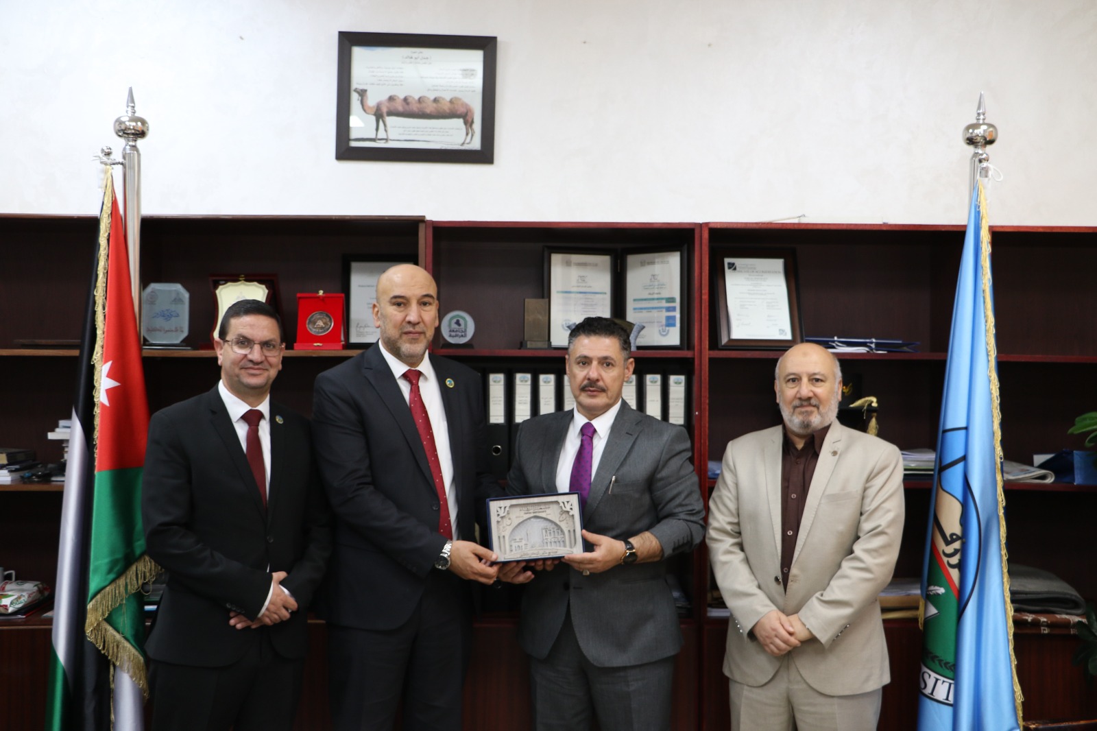 وفي ختام الزيارة، قدم نائب رئيس جامعة الزرقاء للشؤون الأكاديمية الاستاذ الدكتور علاء الدين صادق درع الجامعة التقديري للوفد السعودي.