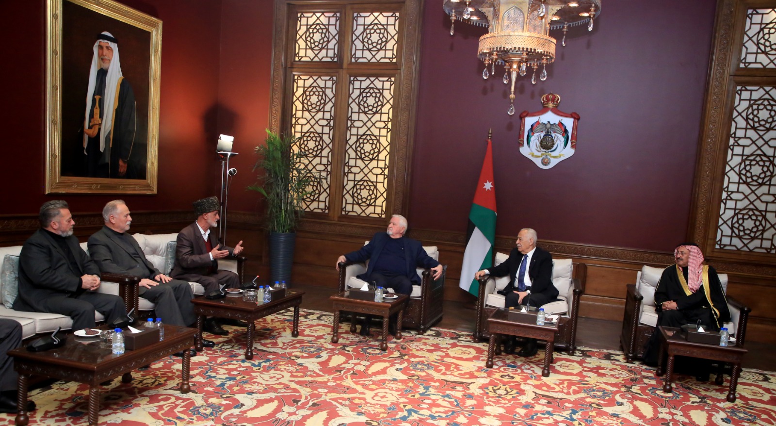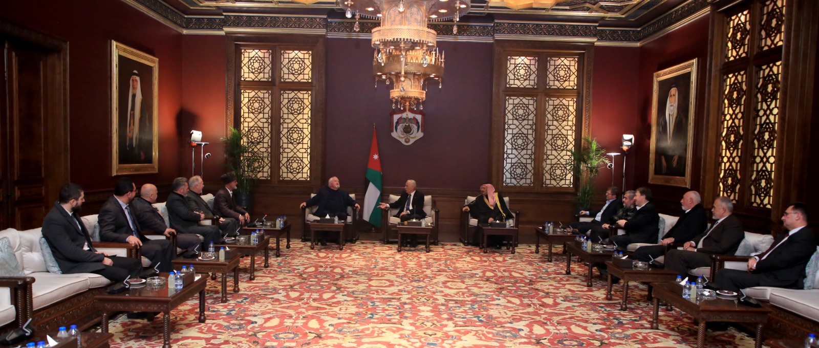 جاء ذلك، خلال لقائه، اليوم الخميس، في الديوان الملكي الهاشمي، ثلاثة وفود من أبناء عشيرة الحجات، وممثلين عن المجلس العشائري الشيشاني، ووفدا شبابيا من أبناء محافظات الجنوب، في لقاءات منفصلة، بحضور مستشار جلالة الملك لشؤون العشائر كنيعان البلوي.