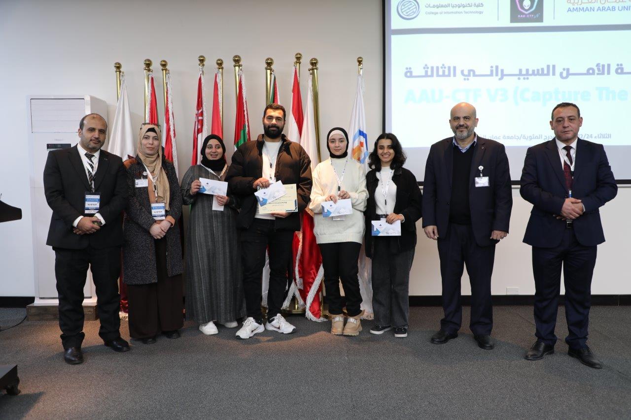سرايا - أقامت كلية تكنولوجيا المعلومات في جامعة عمان العربية مسابقة "Capture the Flag" بنسختها الثالثة AAU-CTFv3 بالتعاون مع شركة CyberAliens، والتي نُظمت على مرحلتين، حيث تمثلت المرحلة الأولى في التصفيات التأهيلية التي استمرت لمدة (36) ساعة، بمشاركة 58 فريقًا من 220 طالبًا وطالبة، حيث يتكون كل فريق من 4 أفراد. وفي المرحلة النهائية التي أُقيمت في حرم جامعة عمان العربية، حيث تأهل 28 فريقًا يتكونون من 100 طالب، ليتنافسوا في جولة الحسم النهائية.