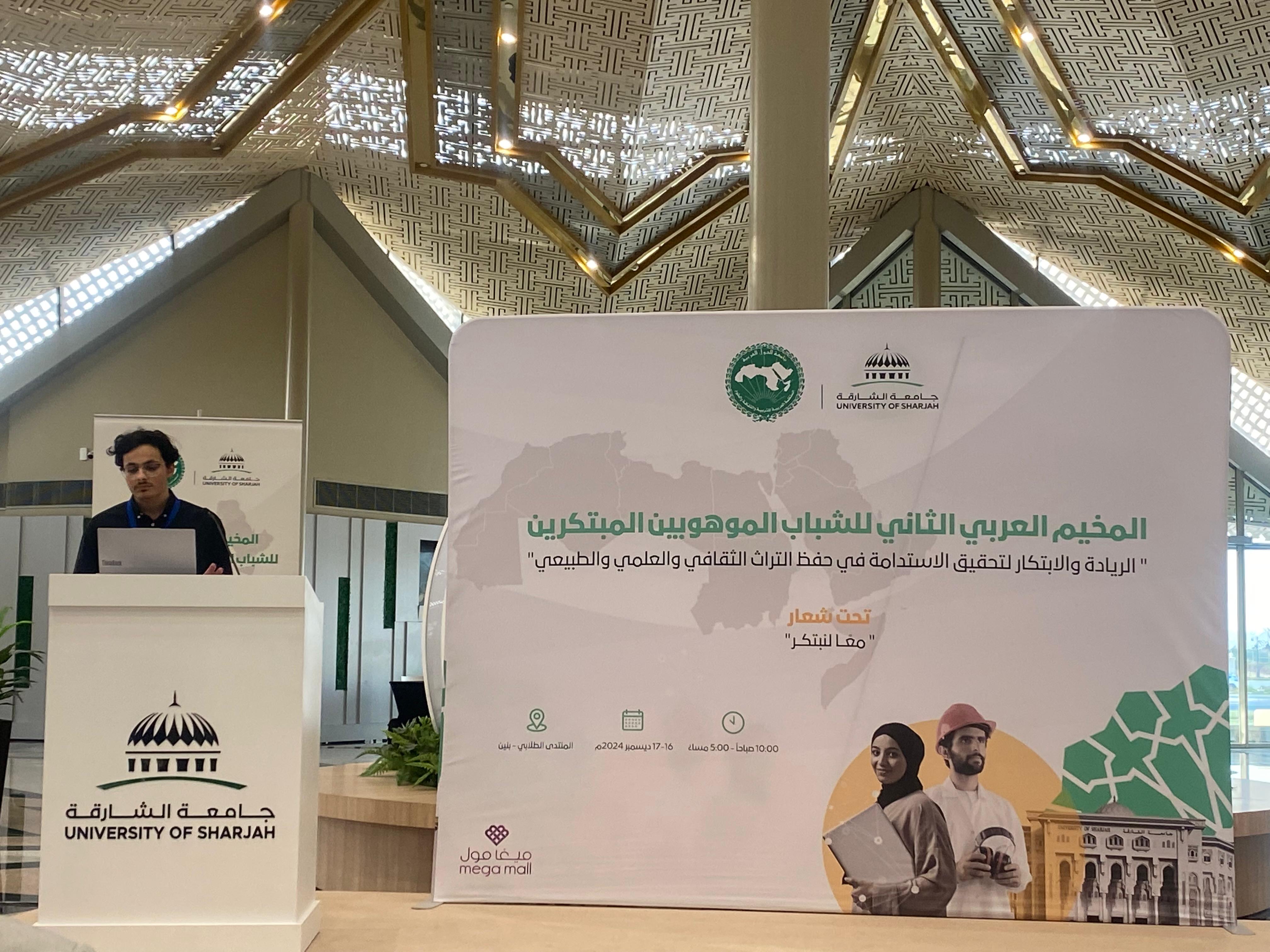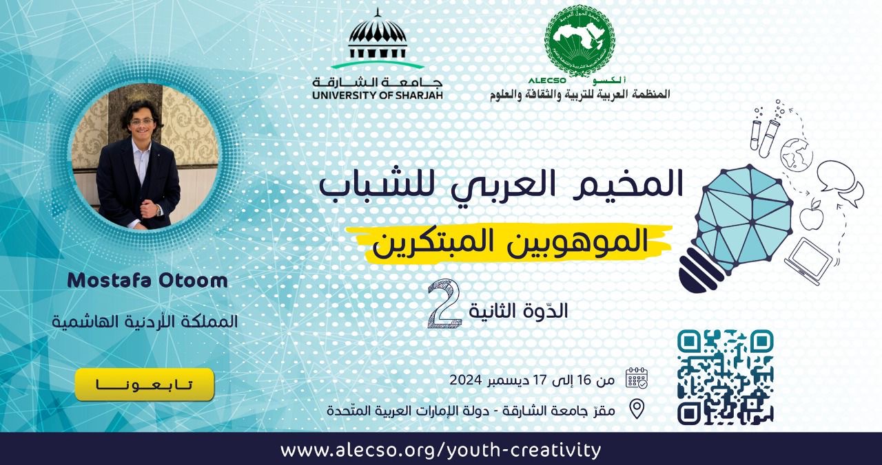 سرايا - في إطار الدعم المستمر من جامعة عمان العربية لطلبتها المتميزين، شارك الطالب مصطفى عتوم من كلية تكنولوجيا المعلومات في جامعة عمان العربية في المخيم العربي الثاني للشباب الموهوبين المبتكرين تحت شعار "الريادة والابتكار لاستدامة وحفظ التراث الثقافي والعلمي والطبيعي"، والذي أُقيم في جامعة الشارقة بدولة الإمارات العربية المتحدة.