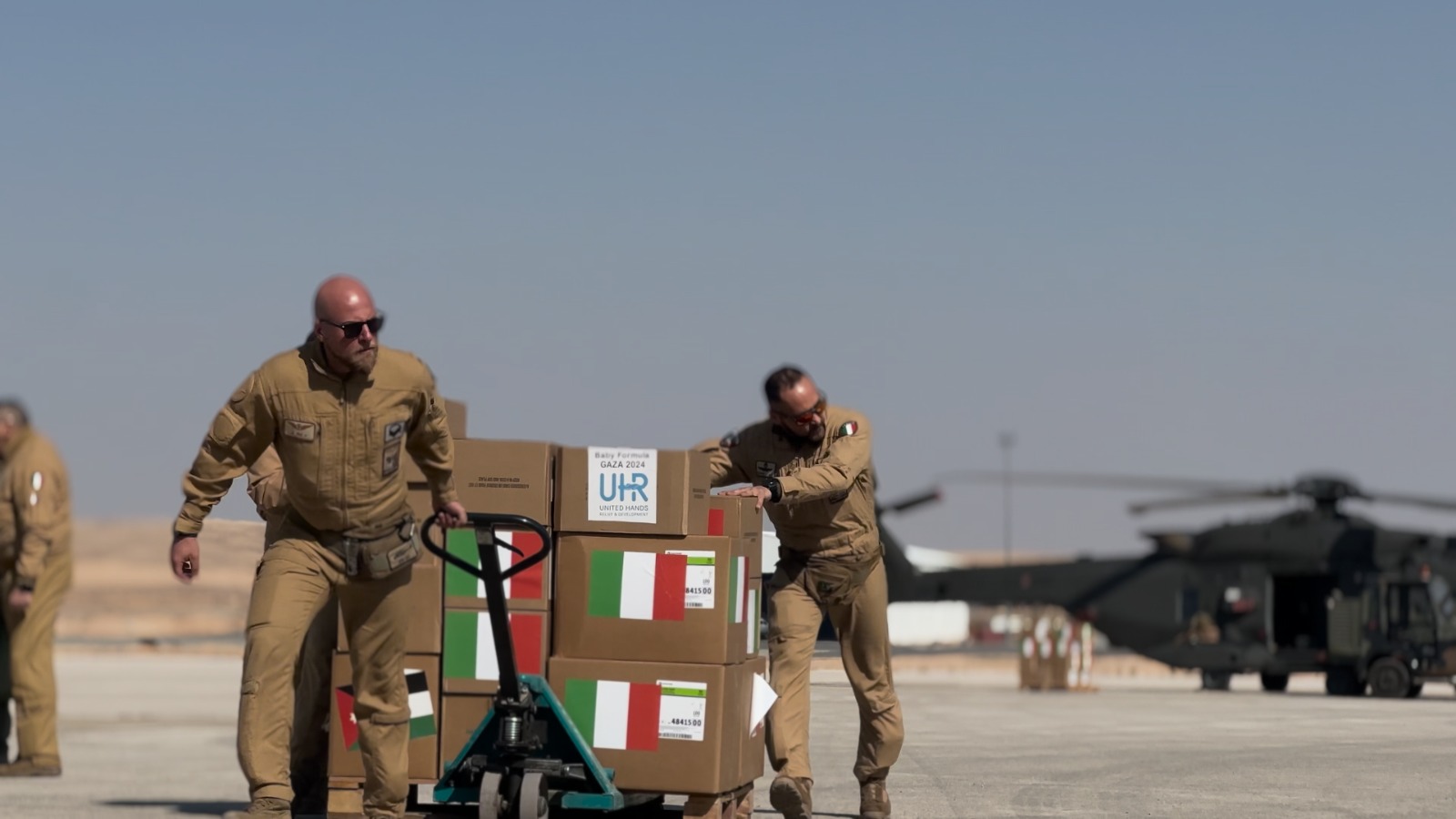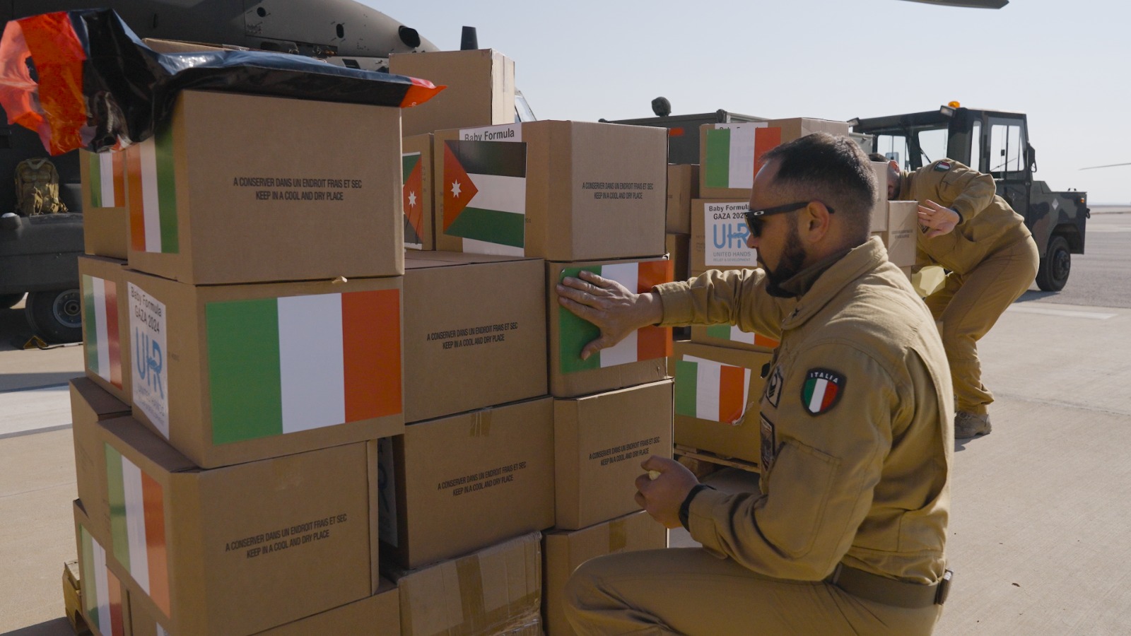 سرايا - شاركت القوات الجوية الإيطالية مع سلاح الجو الملكي الأردني بالجهود الاغاثية والإنسانية ضمن الجسر الجوي إلى قطاع غزة الذي استئنف العمل به قبل نحو أسبوع.