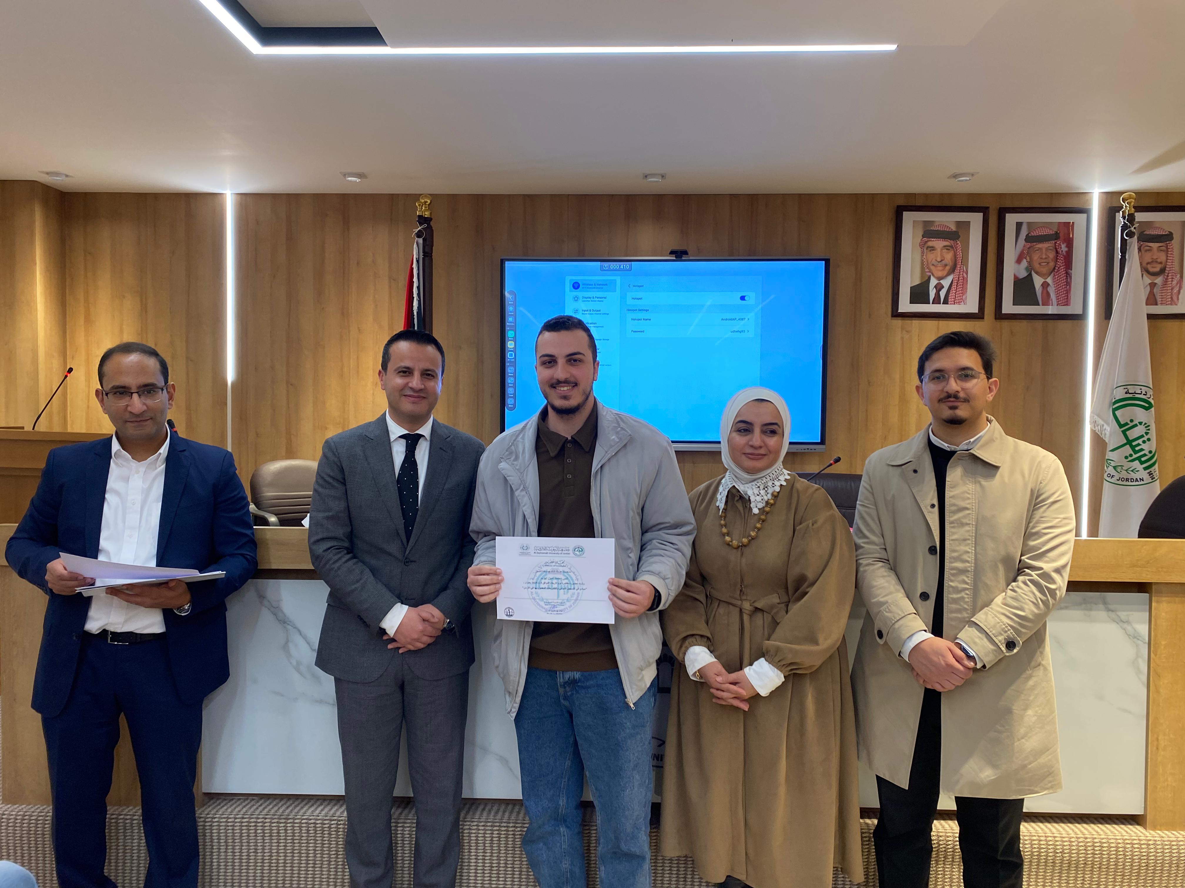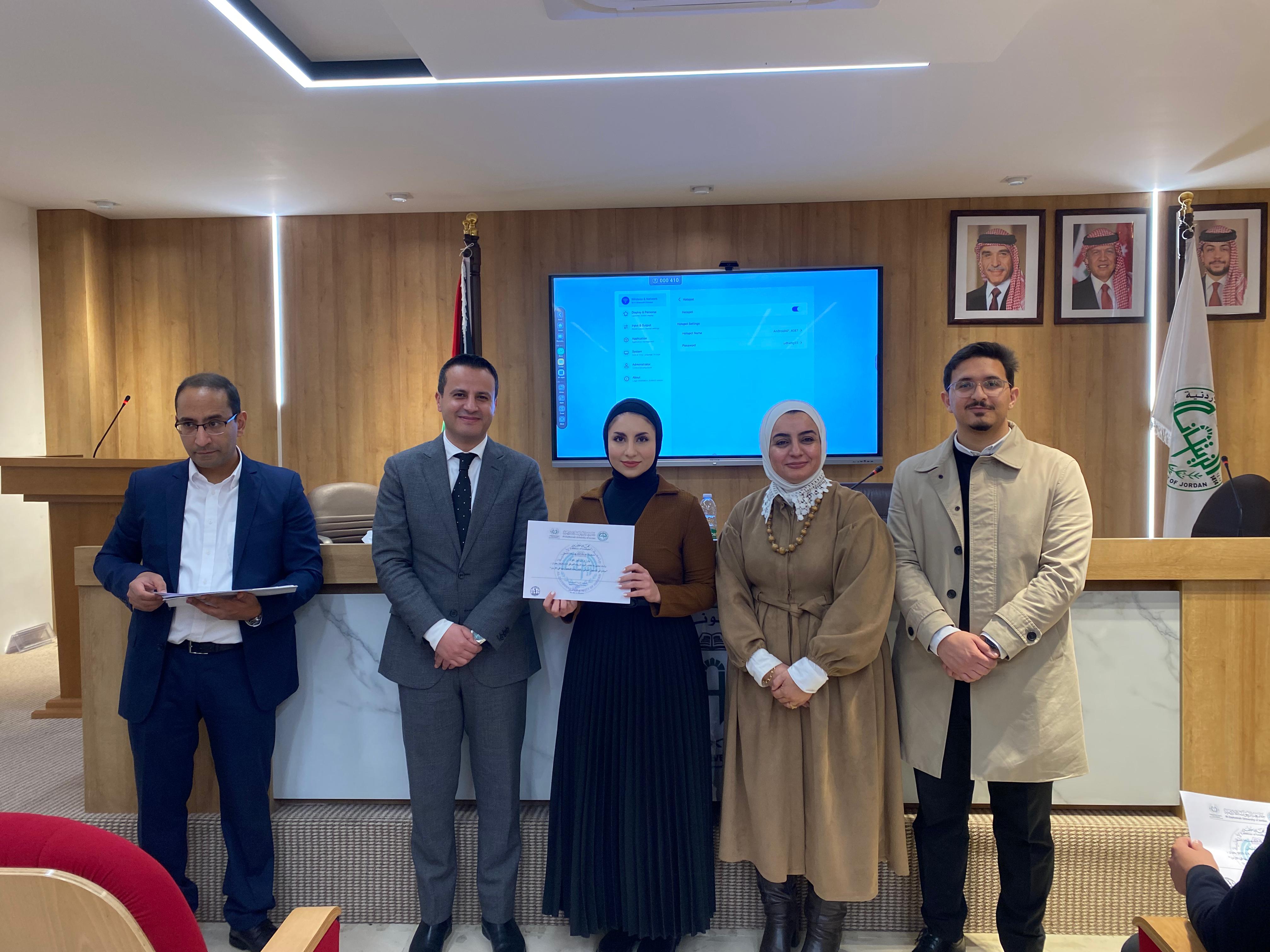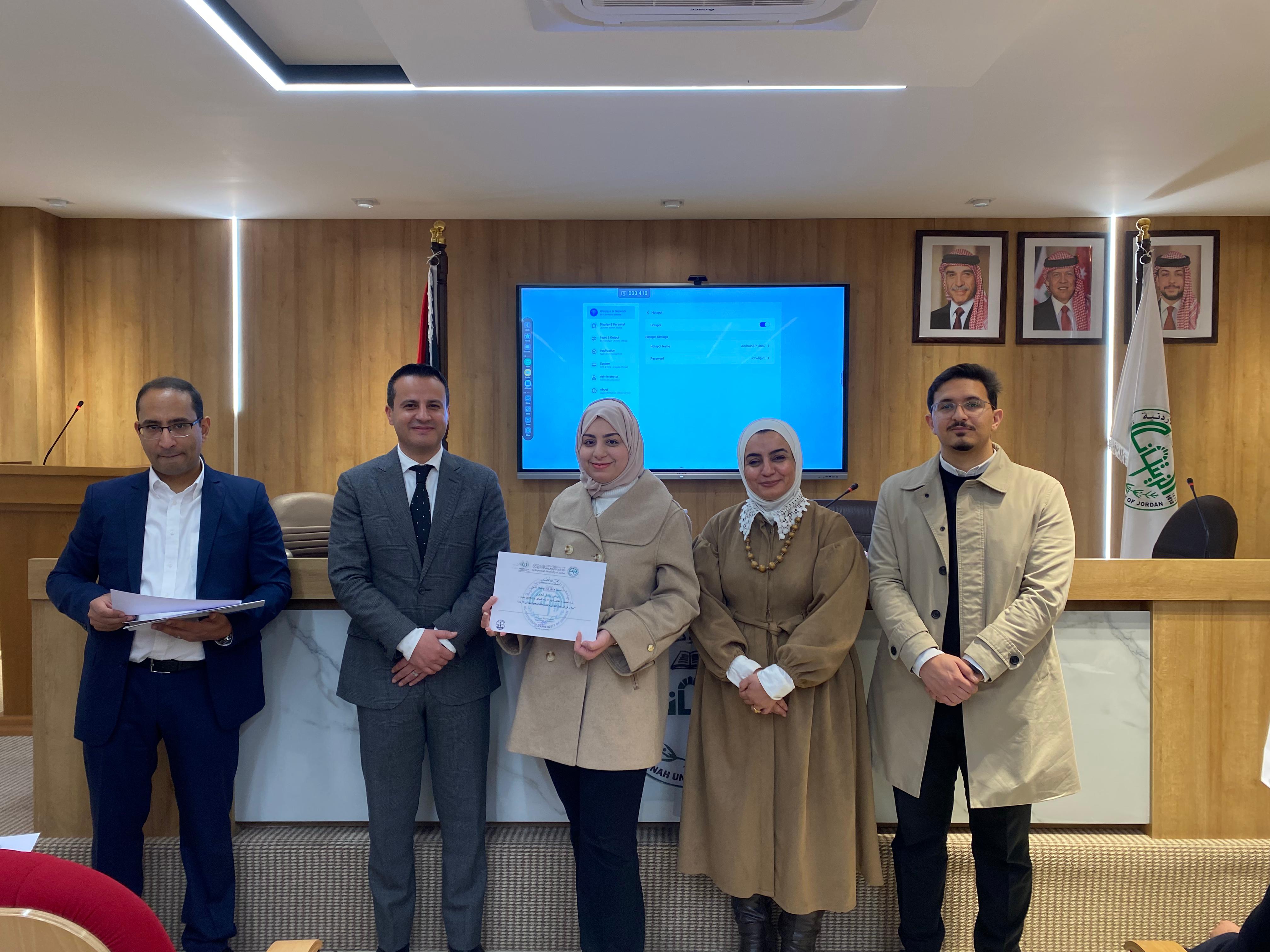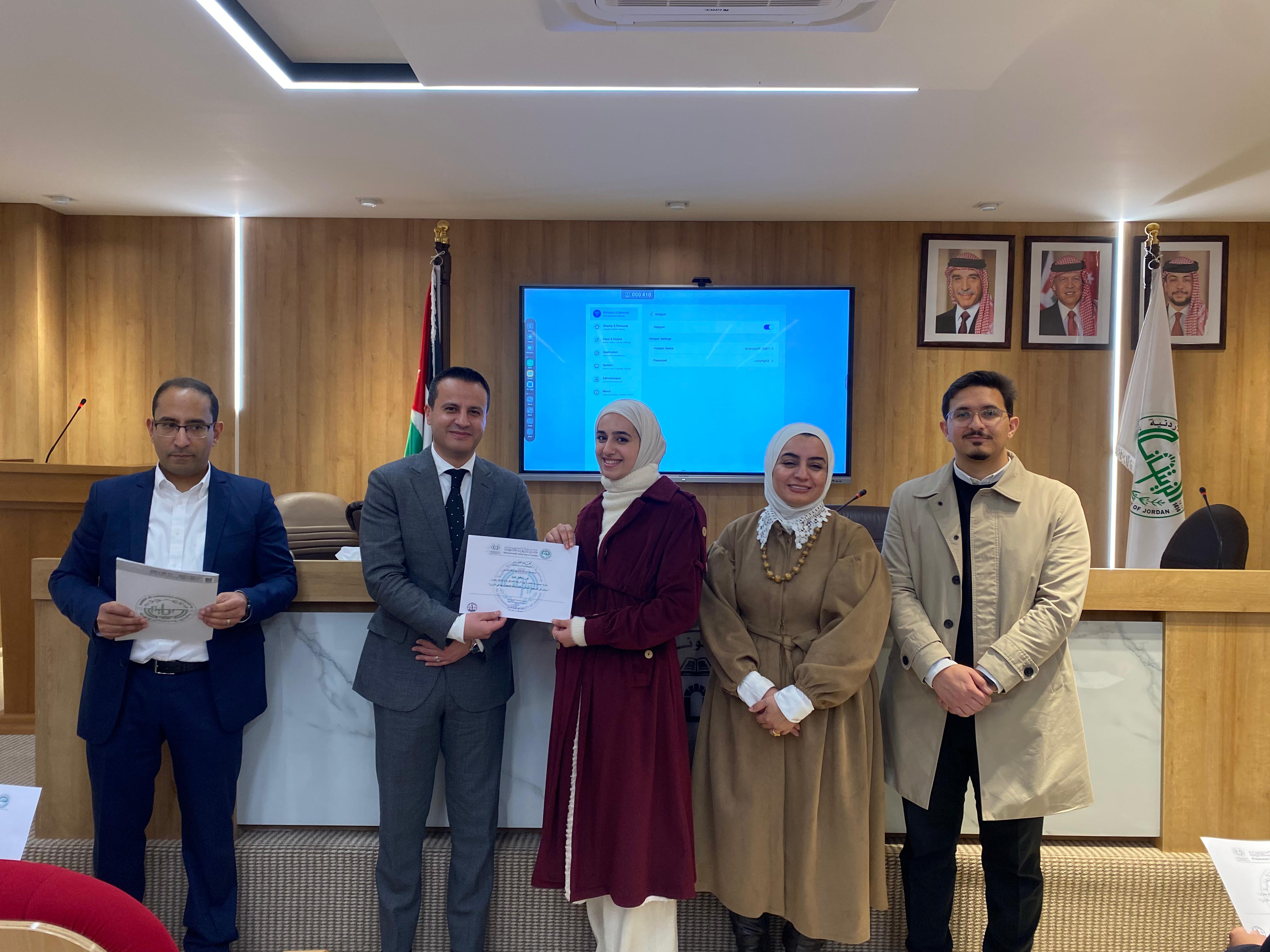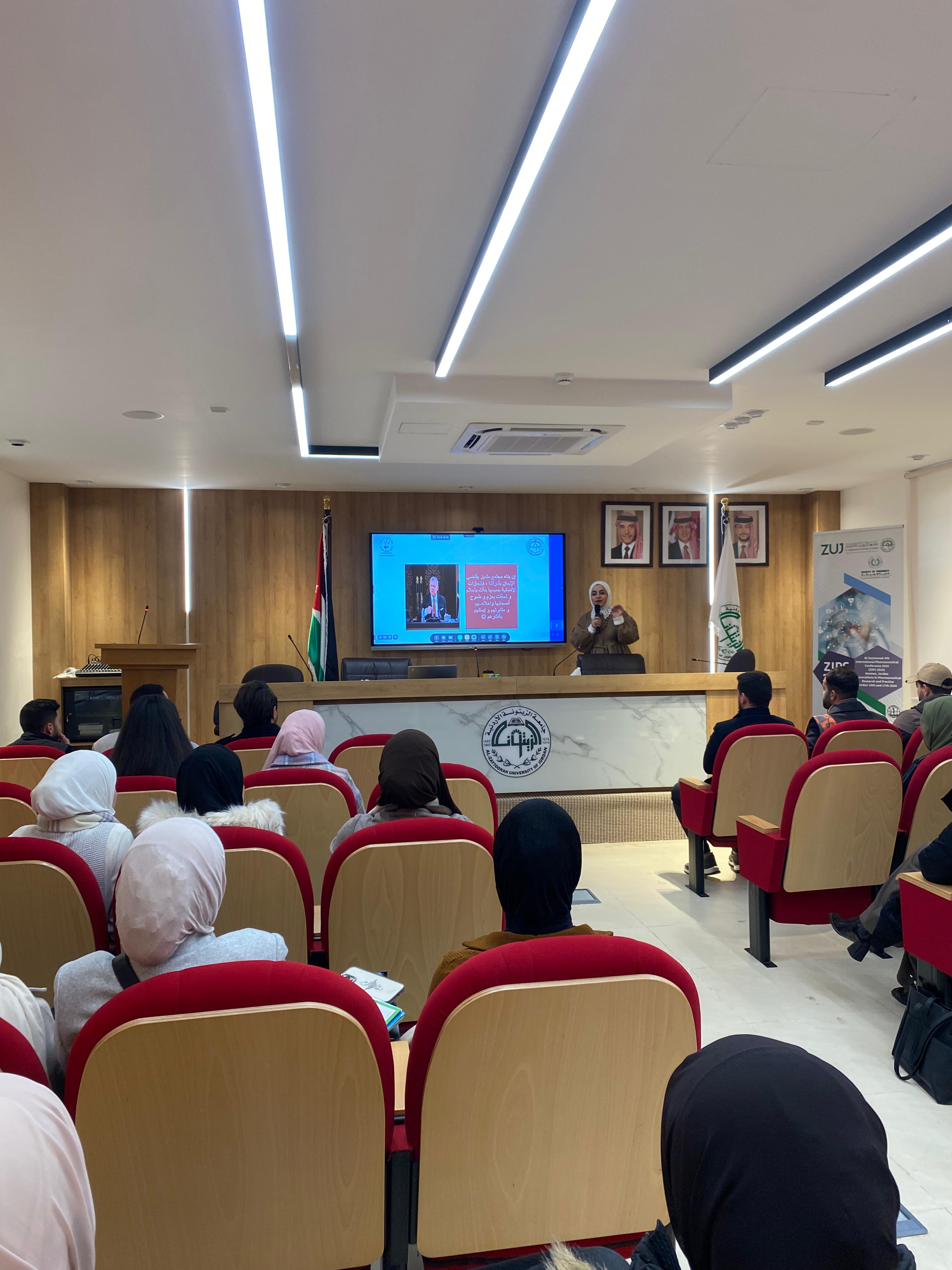 سرايا - عقدت كلية الصيدلة في جامعة الزيتونة الأردنية دورة تدريبية بعنوان "مبادئ التسجيل الدوائي والتشريعات المعمول بها في الأردن"، قدمتها الصيدلانية إسراء الزعبي، مستشارة المدير العام لشؤون الدواء في المؤسسة العامة للغذاء والدواء، بحضور الدكتور علاء الحسبان، عميد الكلية، ونائب العميد الدكتور محمد الوحش، ومنسق الدورة الدكتور نمر الخطيب، وعددٍ من طلبة الكلية.