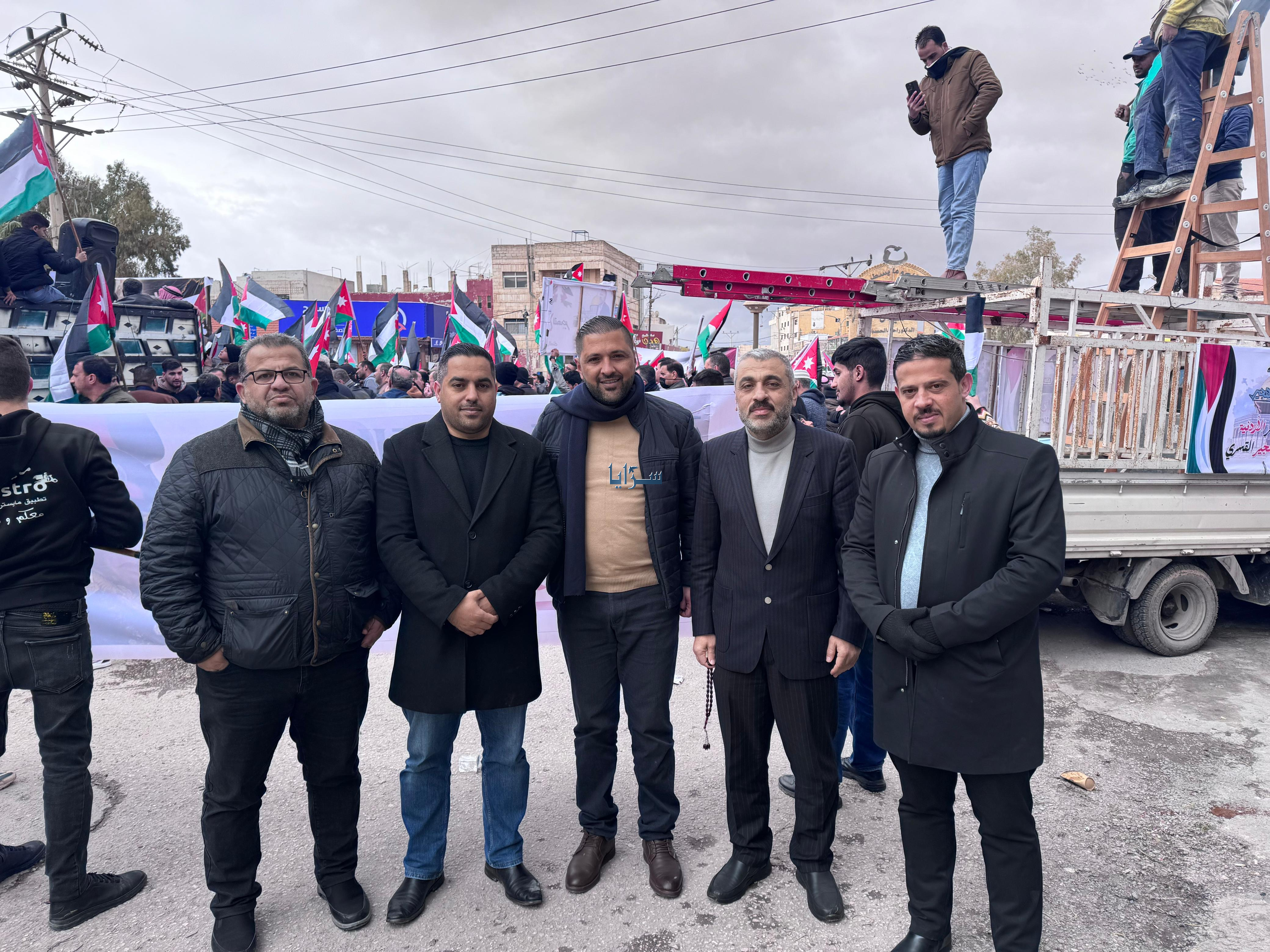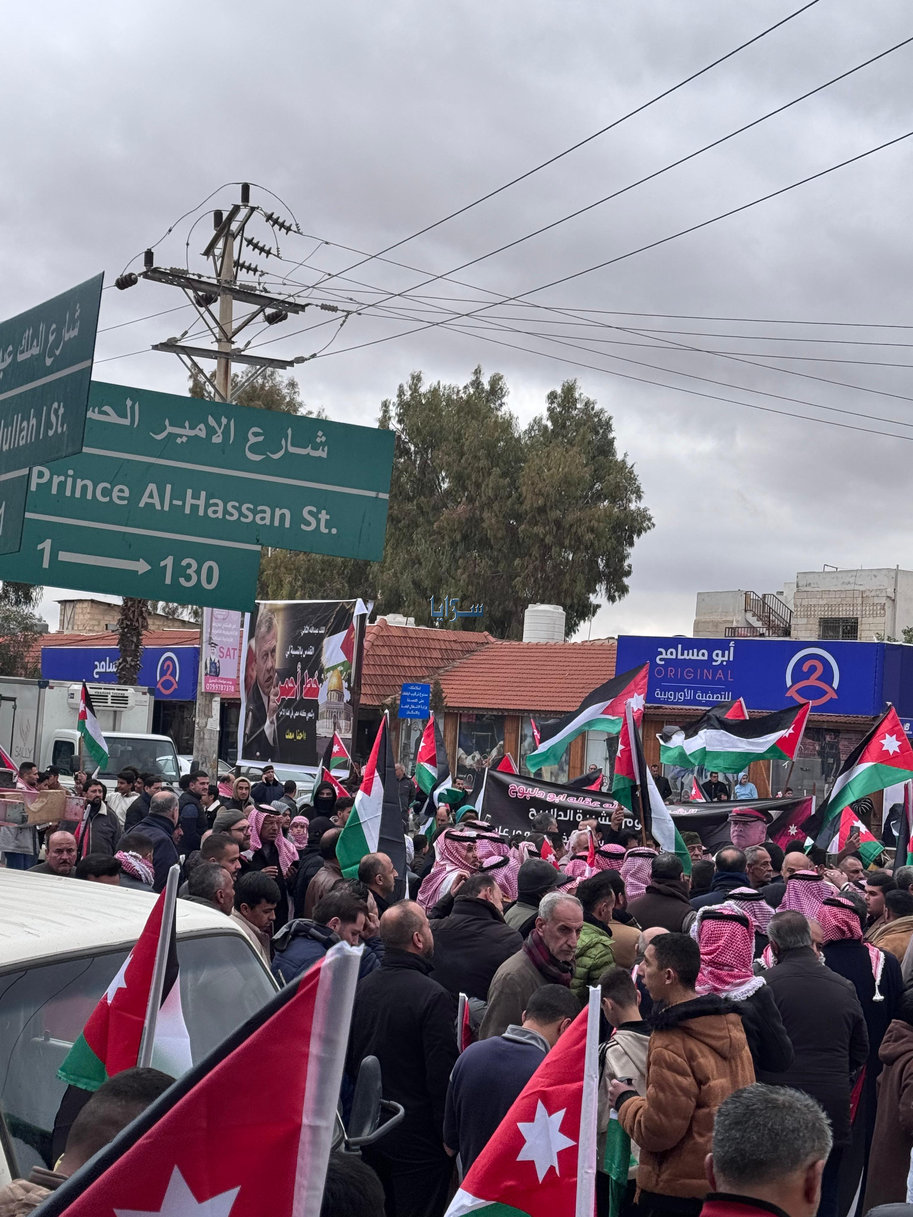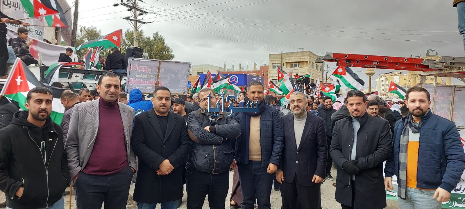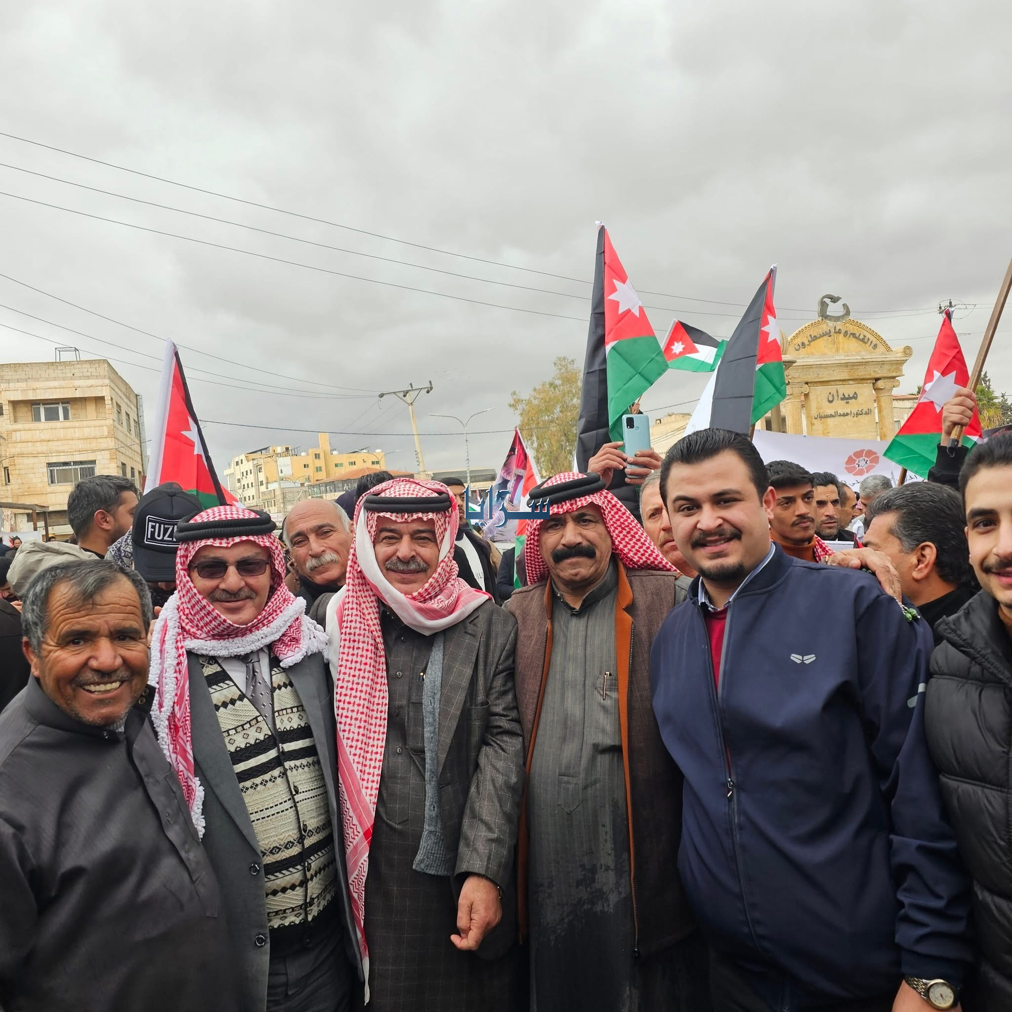 سرايا - المفرق - رهام الخزاعلة - شهدت محافظة المفرق، اليوم، وقفة جماهيرية حاشدة ضمّت فعاليات شعبية وحزبية ونقابية وعشائرية، دعماً لموقف جلالة الملك عبدالله الثاني الرافض لمشاريع التهجير والوطن البديل.