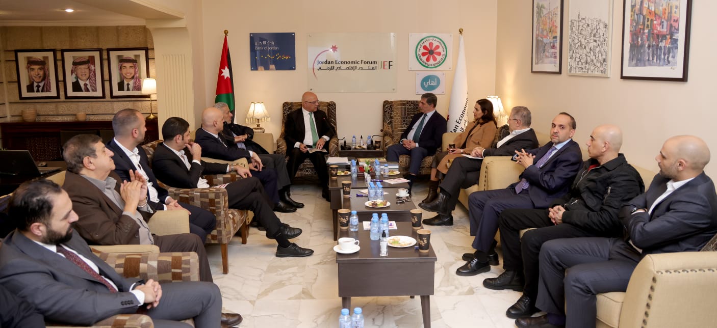 عقد المنتدى الاقتصادي الأردني جلسة حوارية بعنوان "نحو اقتصاد مستدام:  كيف تسهم التنمية الصناعية والاستثمارات الاستراتيجية في تعزيز النمو بالأردن"، بمشاركة الرئيس التنفيذي لشركة البوتاس العربية الدكتور معن النسور، وبحضور رئيس المنتدى مازن الحمود، وعدد من أعضاء مجلس إدارة المنتدى والهيئة العامة والمهتمين بالشأن الاقتصادي والمالي.