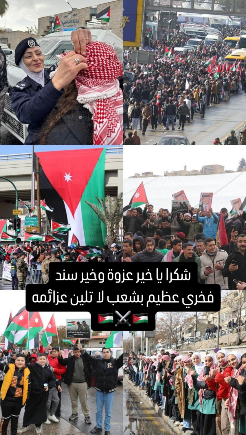 سرايا - شكر ولي العهد الأمير الحسين بن عبدالله، الشعب الأردني، بعد الاستقبال الحاشد لجلالة الملك عبدالله الثاني وولي العهد لدى وصولهما مطار ماركا، عائدين من رحلة عمل إلى الولايات المتحدة الأمريكية التقى خلال الملك بالرئيس الأمريكي دونالد ترامب، ورفض خطة تهجير الفلسطينيين من قطاع غزة.