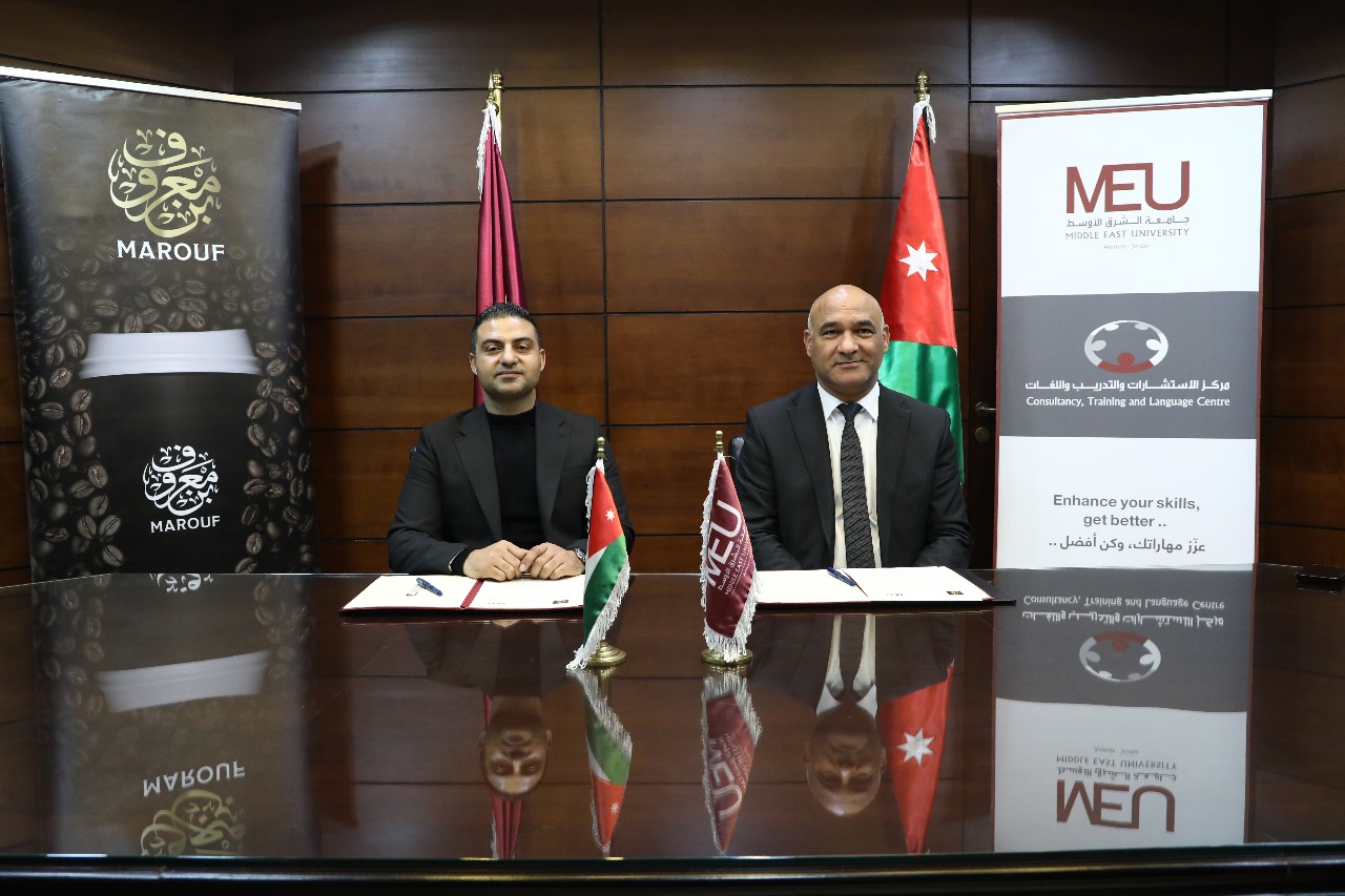 سرايا - وقّع مركز الاستشارات والتدريب واللغات في جامعة الشرق الأوسط اتفاقية تعاون استراتيجي مع شركة معروف للصناعات الغذائية، تهدف إلى تأسيس برنامج متكامل للتدريب والإشراف الفني، يُسهم في تمكين الطلبة وتأهيلهم للدخول إلى سوق العمل بكفاءة عالية.
