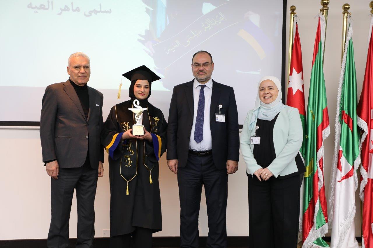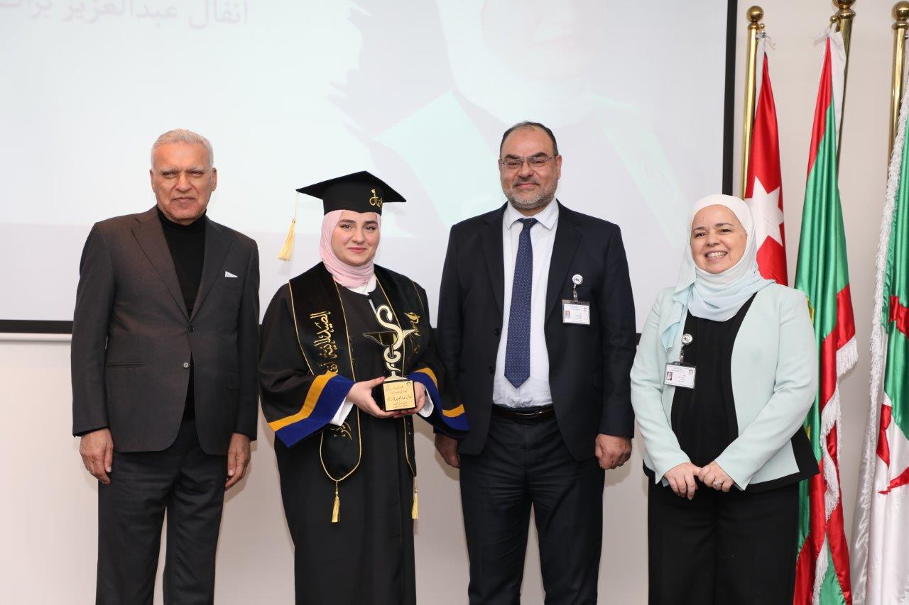 بدورها أعربت الدكتورة أبو حويج عن اعتزازها بهذه الكوكبة الرائعة من الخريجين الذين بذلوا أقصى جهدهم للوصول إلى هذه اللحظة المشرقة، ودعتهم للسير بخطى ثابتة نحو ميادين العمل للبناء والتميز والاستمرار في الابتكار والتميز فالأفق لا يزال واسعًا للمزيد من النجاحات، وأوضحت بأن العمل لا يزدهر إلا بعزيمة قوية وإرادة صادقة وأن الريادة تتطلب رؤية واضحة وأهدافًا طموحة ومسيرة مستمرة محملة بعلم راسخ وطموح لا حدود له والتزام عالي بالمعايير الأخلاقية والمهنية ،مؤكدةً بأن كلية الصيدلة ستبقى دومًا بيتكم الدافئ الذي يفاخر بإنجازاتكم.