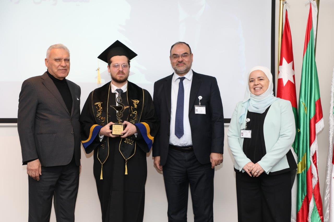 من جانبه أعرب الدكتور يامين عن فخر جامعة عمان العربية بالإنجازات الأكاديمية التي حققتها كلية الصيدلة، مؤكدًا على أن هذا الحفل يمثل ثمرة سنواتٍ من الجد والعطاء المستمر، وأشار إلى التزام الجامعة بإعداد كوادر صيدلانية مؤهلة قادرة على الإسهام بفعالية في تطوير القطاع الصحي على المستويين المحلي والدولي، كما أشاد بالجهود الكبيرة التي بذلها أعضاء الهيئة التدريسية في تأهيل خريجي كلية الصيدلة وتزويدهم بالمعرفة والمهارات اللازمة لتحقيق الريادة في مجالهم، وفي ختام كلمته نقل تهاني الأستاذ الدكتور محمد الوديان رئيس الجامعة القلبية إلى الخريجين وذويهم.