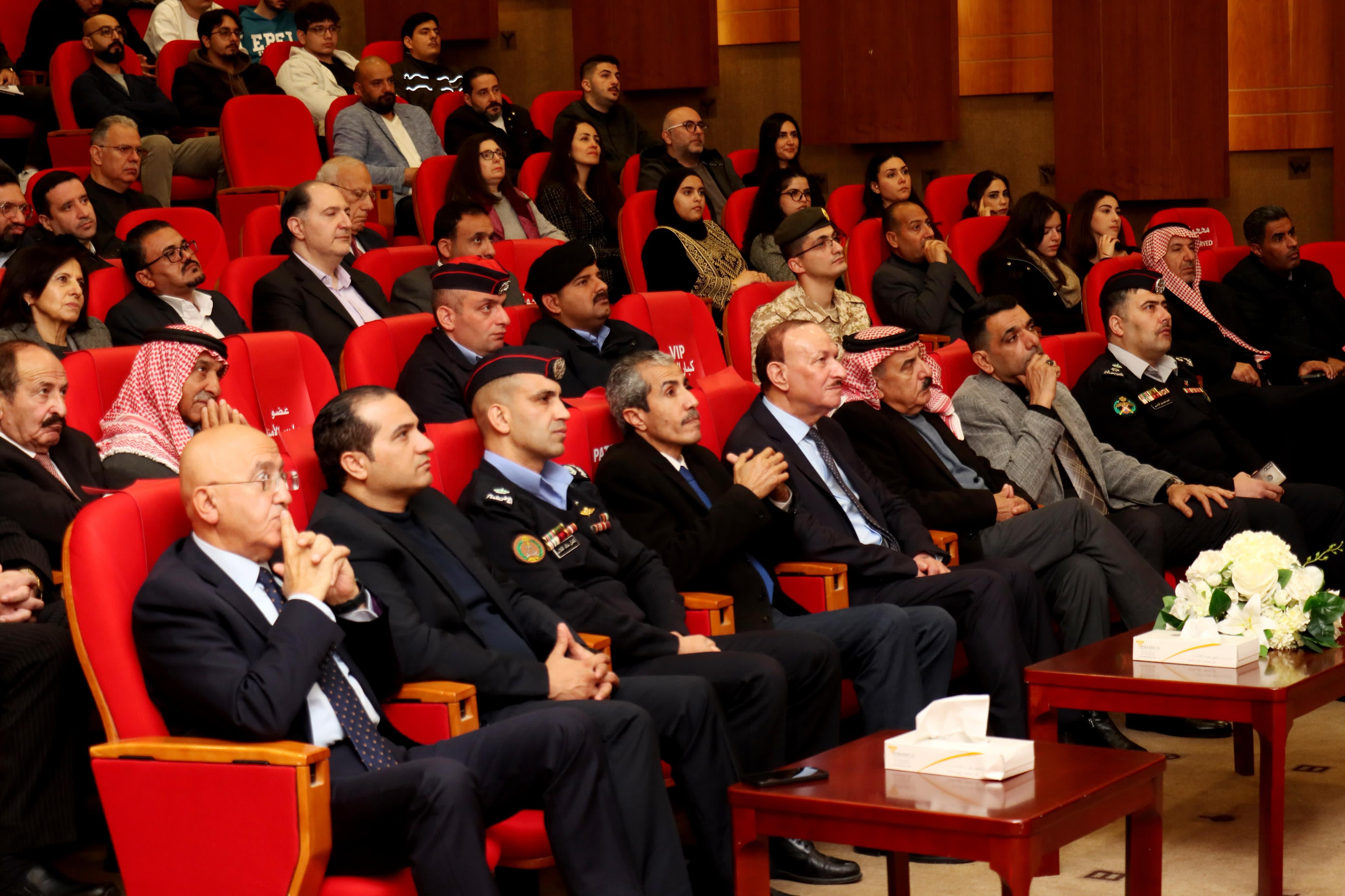 وحضر الحفل الذي اقيم في مسرح الجامعة رئيس مجلس أمناء الجامعة المهندس عزام شويحات، ورئيس بلدية مادبا عارف الرواجيح، والعين محمد خريبات الأزايدة، وعدد من مدراء الدوائر الإدارية والأمنية في المحافظة ونواب واعيان سابقين وابناء المجتمع المحلي ورجال امن عام، ومجموعة من أعضاء الهيئتين التدريسية والادارية في الجامعة والطلبة.