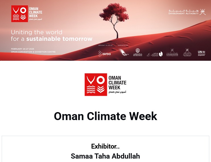 سرايا - انطلاقًا من رؤية جامعة عمان العربية في تعزيز الاستدامة وترسيخ ثقافة الابتكار وبالتنسيق بين مركز الإبداع والابتكار وريادة الأعمال وكلية الصيدلة في الجامعة، شاركت الدكتورة سماء طه عضو هيئة التدريس في كلية الصيدلة في فعاليات أسبوع عُمان للمناخ والذي أقيم في مسقط / سلطنة عمُان خلال الفترة 24-26/2/2025، وبمشاركة نخبة من القادة والخبراء من مختلف أنحاء العالم لاتخاذ إجراءات وتحقيق أهداف مناخية، حيث تضمن الأسبوع استعراضًا لأحدث الحلول المناخية العالمية، ومناقشة كيفية دعم هذه الحلول لمنطقة الشرق الأوسط وشمال أفريقيا والعالم في جهود إزالة الكربون، كما اشتملت الفعاليات على محادثات متميزة وورش عمل عملية، إلى جانب معرض مبتكر عرض أحدث التقنيات منخفضة الكربون والصناعات البيئية التي تسهم في تشكيل مستقبل مستدام.