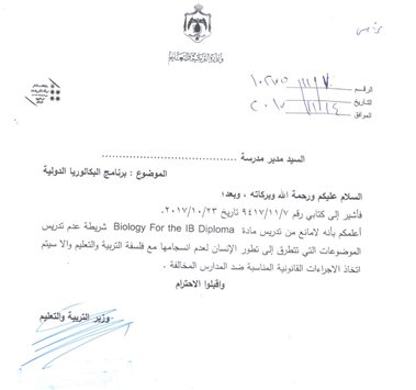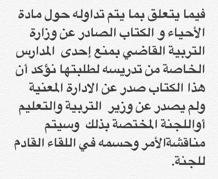 وكتب الرزاز عبر حسابه الشخصي على "تويتر"، "فيما يتعلق بما يتم تداوله حول مادة الأحياء والكتاب الصادر عن وزارة التربية القاضي بمنع إحدى المدارس الخاصة من تدريسه لطلبتها، نؤكد أن هذا الكتاب صدر عن الإدارة المعنية ولم يصدر عن وزير التربية والتعليم أو اللجنة المختصة".