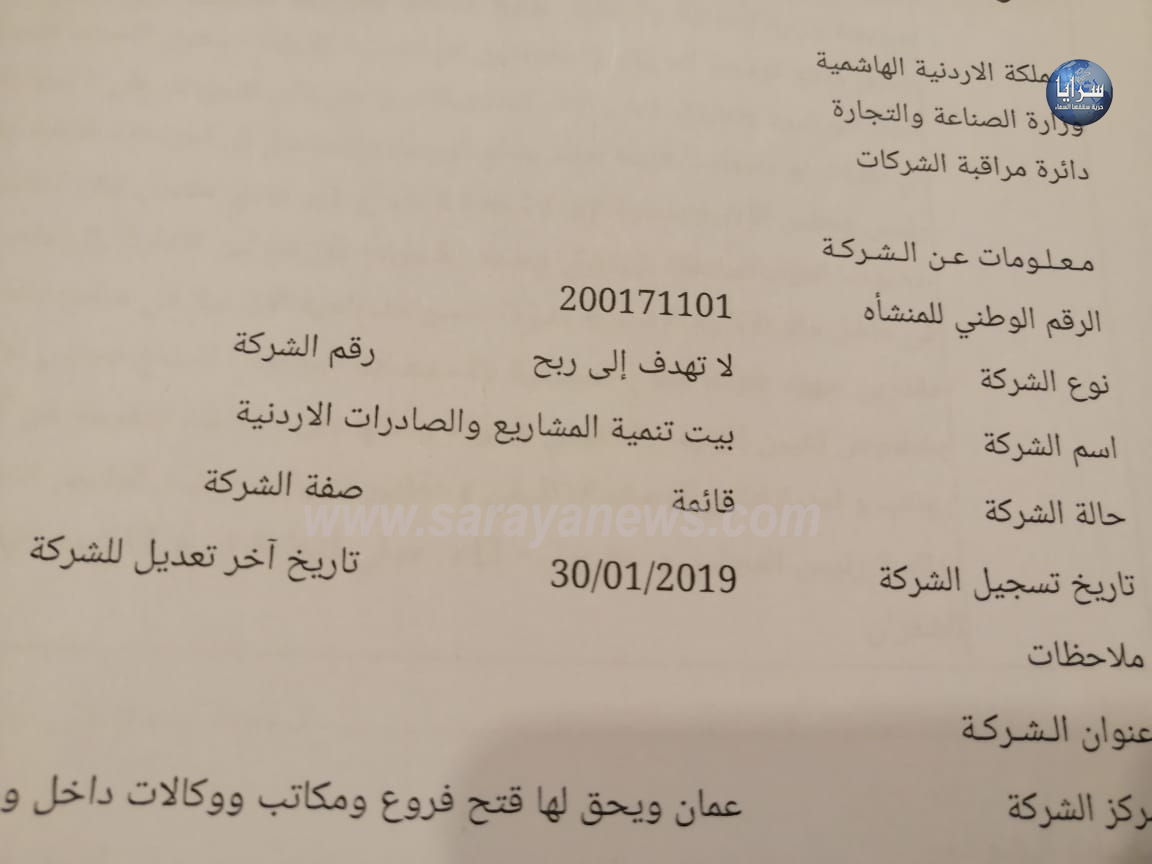 سرايا - بهاء سلامة - حصلت "سرايا" على وثائق خاصة تُظهر تعيين المتنبىء الجوي محمد الشاكر عضواً في مجلس إدارة شركة الصادرات التي أسست بـ"سرية" بشراكة بين الحكومة و القطاع الخاص، و حملت الشركة بحسب وثائق دائرة مراقبة الشركات، إسم " بيت تنمية المشاريع و الصادرات الأردنية".
